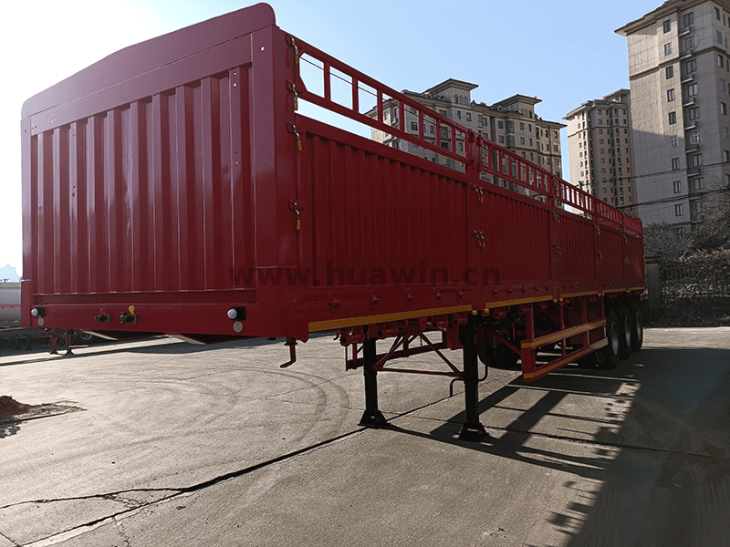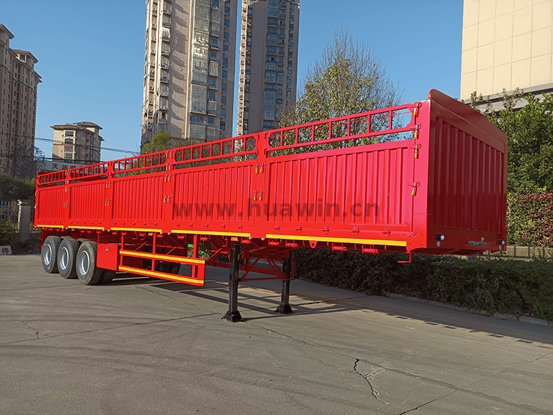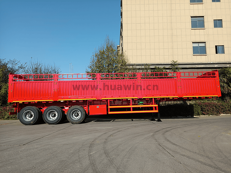 La semi-remorque d'espacerie de 3 essieux de 40 pieds est une remorque de transport polyvalente et robuste qui combine l'ouverture d'un plateau avec la construction clôturée d'un camion de garde-corps pour une large gamme de besoins de transport de fret.