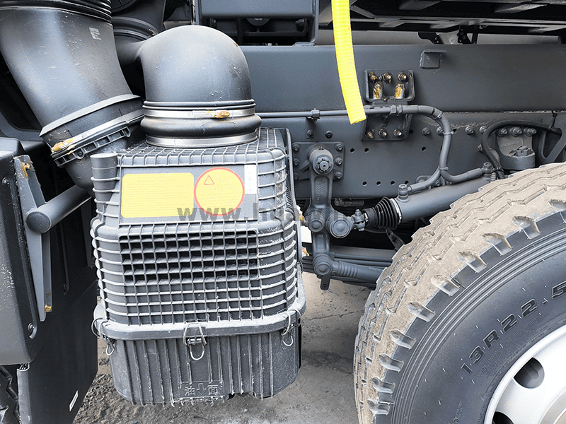 Le Sinotruk Howo Duck Truck-TX-8X4 utilise des pneus 315 / 80R22.5 (Tread mixte / 18PR). Ces pneus combinent des modèles de bande de roulement latérale et longitudinale pour équilibrer la traction et les performances de direction. Les blocs de bande de roulement centraux sont élargis pour améliorer la stabilité à des vitesses élevées. La conception de la bande de roulement de l'épaule ouverte améliore le drainage et la dissipation de la chaleur, améliorant les performances sur les routes humides et glissantes.