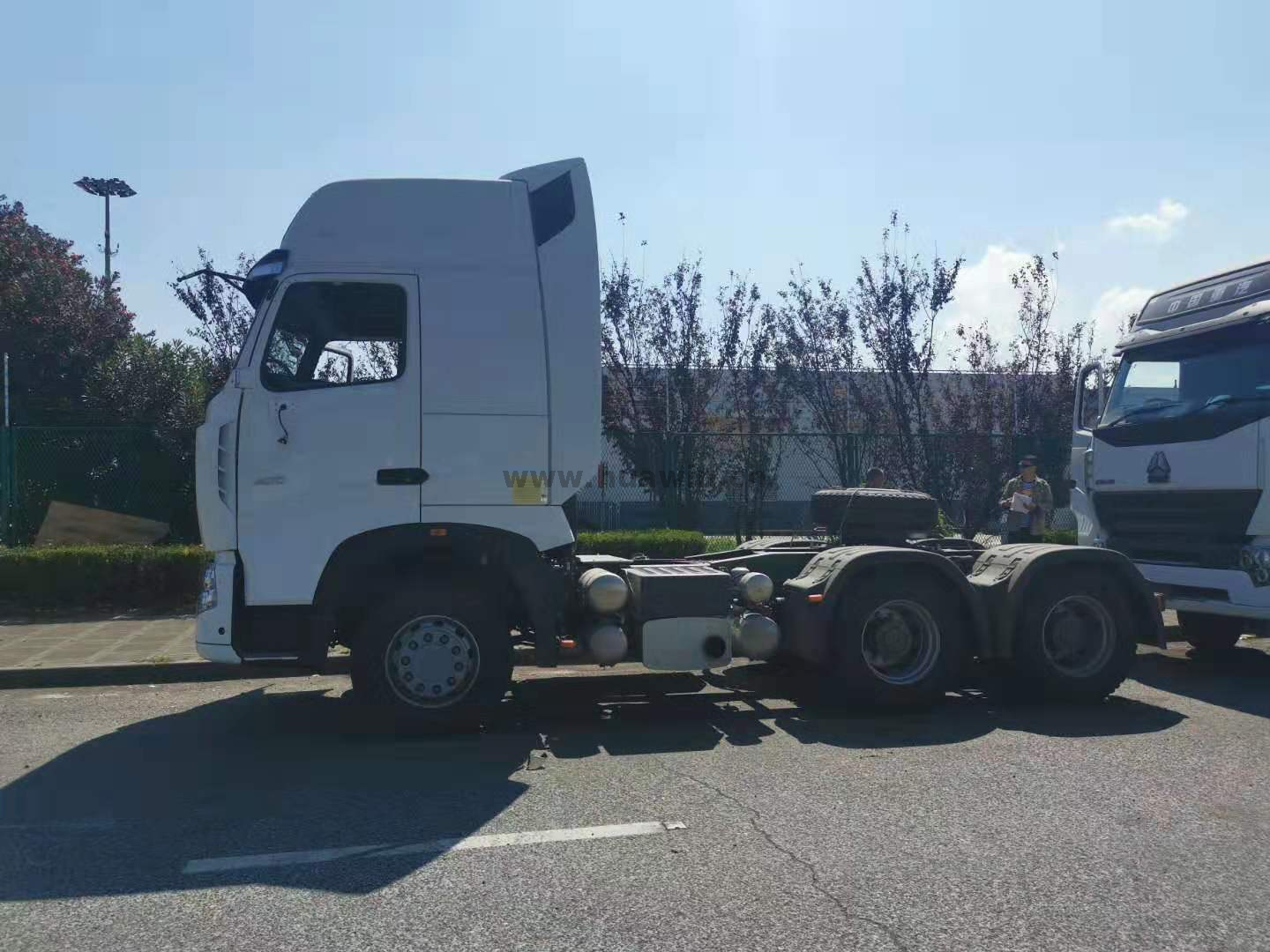 Moteur | Faire: Sinotruk Moteur diesel injection de diesel Norme d'émission: Euro 2 (Euro 3-Euro 6 est facultatif) 6 cylindres en ligne avec refroidissement par eau, turbo-chargement et refroidissement intermédiaire Puissance de cheval: 371 ch (336 ch, 420 ch sont facultatives) |