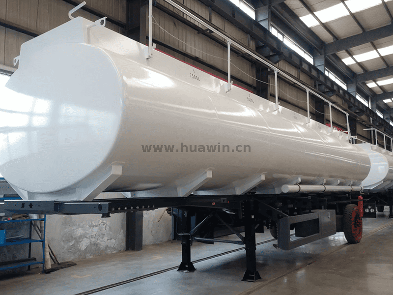 La remorque-citerne de carburant se compose d'un train de roulement et d'un corps de réservoir en acier au carbone, principalement utilisé pour le transport d'essence et de diesel. Il existe également d'autres réservoirs pouvant transporter de l'huile de palme ou d'autres huiles comestibles, etc. La remorque sera reliée par le pivot d'attelage à la sellette d'attelage du camion tracteur, livrant les marchandises d'un endroit à un autre, voire d'un pays à un autre. Le réservoir peut être divisé en 3 ou 6 compartiments pour répondre à vos besoins.