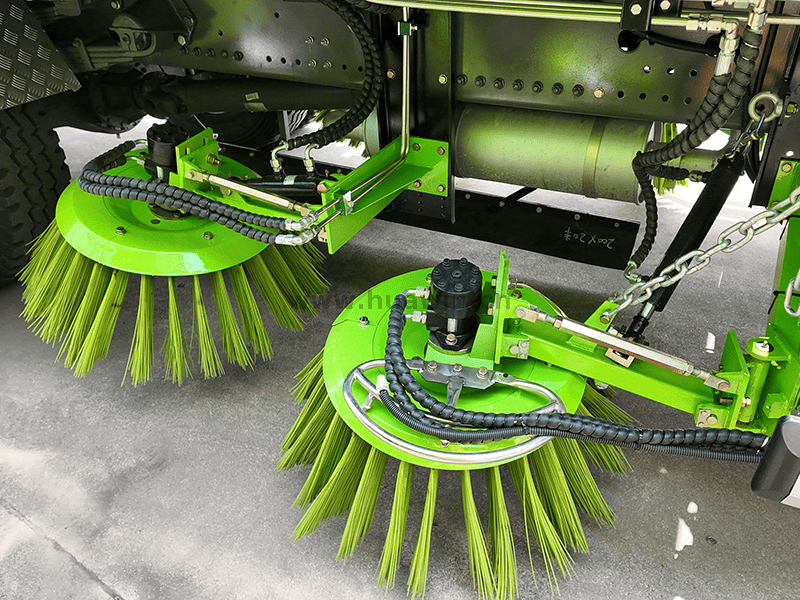 Système de balayage à haute efficacité: combine des brosses de balayeuse avant, une brosse à rouleaux montée sur le centre et des buses d'aspiration pour une large couverture, une forte aspiration et une efficacité de nettoyage élevée.